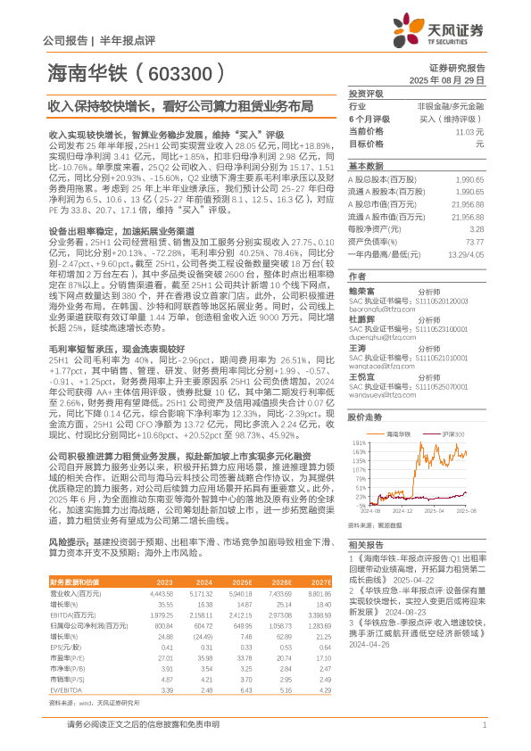 【天风证券】【20250829】海南华铁-收入保持较快增长,看好公司算力租赁业务布局-3页