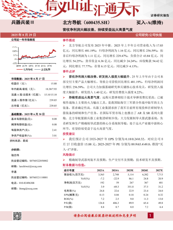 【山西证券】【20250829】北方导航-营收净利润大幅改善,持续受益远火高景气度-5页