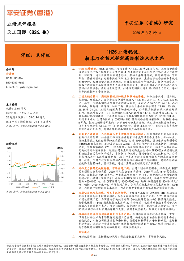 【平安证券(香港)】【20250829】天工国际-1H25业绩稳健,粉末冶金技术铺就高端制造未来之路-6页