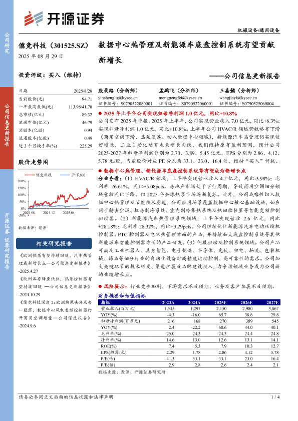 【开源证券】【20250829】儒竞科技-数据中心热管理及新能源车底盘控制系统有望贡献新增长-4页