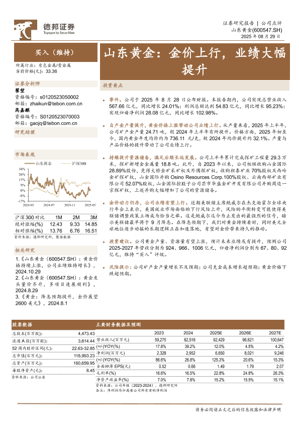 【德邦证券】【20250829】山东黄金-金价上行,业绩大幅提升-3页