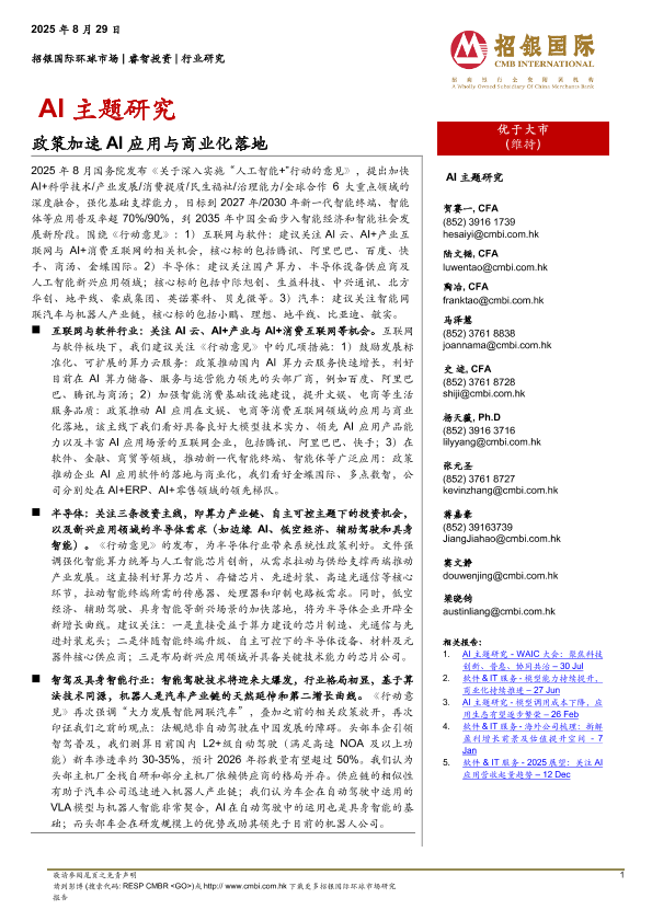 【招银国际】【20250829】人工智能+政策加速AI应用与商业化落地-12页