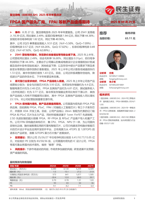 【民生证券】【20250829】复旦微电-2025年半年报点评-3页