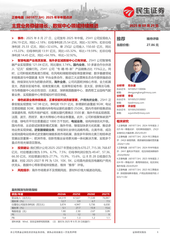 【民生证券】【20250829】正泰电器-2025年半年报点评-3页