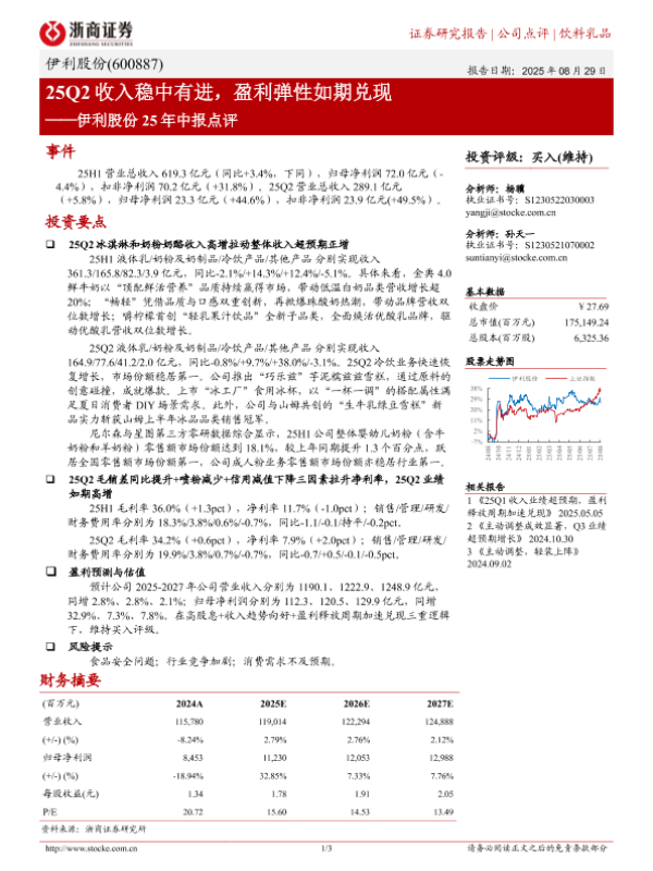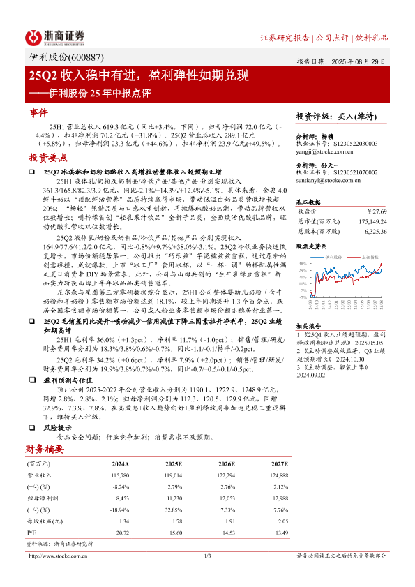 【浙商证券】【20250829】伊利股份-25Q2收入稳中有进,盈利弹性如期兑现-3页