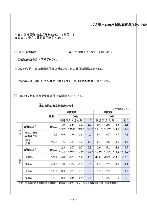 【韩国银行】【202507】进出口价格指数和贸易指数-2025年7月(初步)-18页