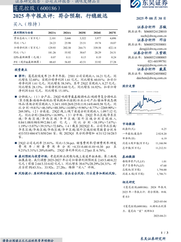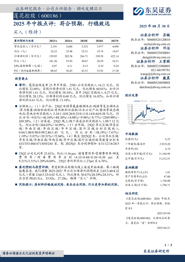 【东吴证券】【20250830】莲花控股-2025年中报点评:符合预期,行稳致远-3页