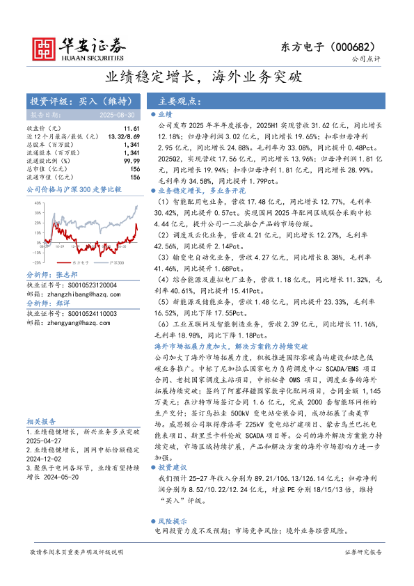 【华安证券】【20250830】东方电子-业绩稳定增长,海外业务突破-4页