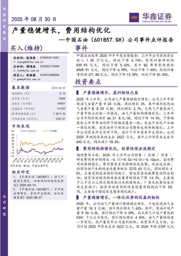 【华鑫证券】【20250830】中国石油-产量稳健增长,费用结构优化-5页