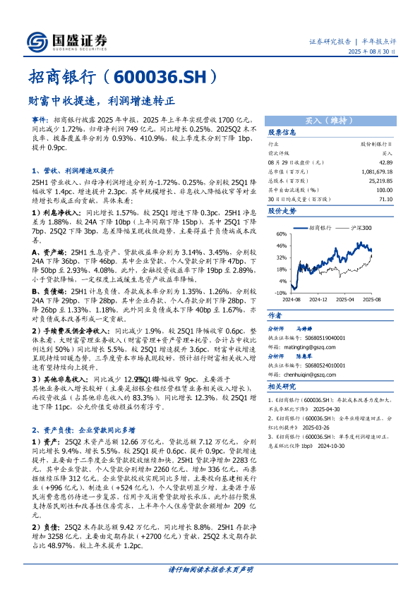 【海通证券】【20250830】招商银行-财富中收提速,利润增速转正-5页