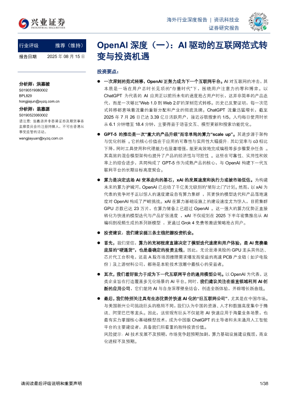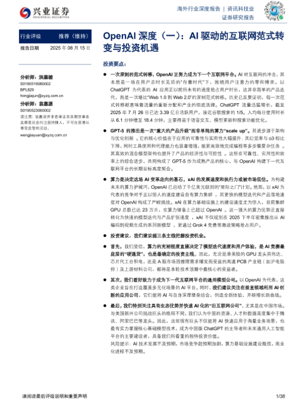 【兴业证券】【20250815】OpenAI- AI驱动的互联网范式转变与投资机遇-38页