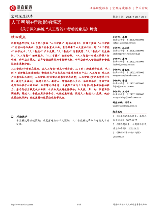 【浙商证券】【20250828】人工智能+行动影响深远-《关于深入实施“人工智能+”行动的意见》解读-13页