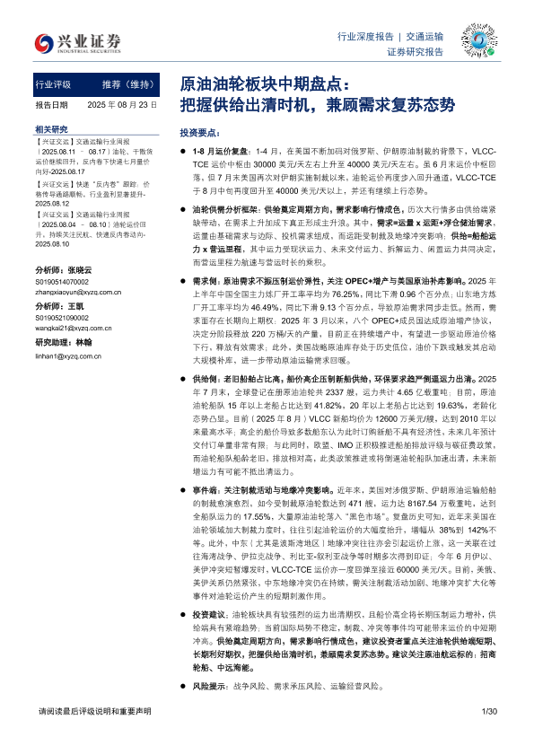 【兴业证券】【20250823】原油油轮板块中期盘点-把握供给出清时机,兼顾需求复苏态势-30页