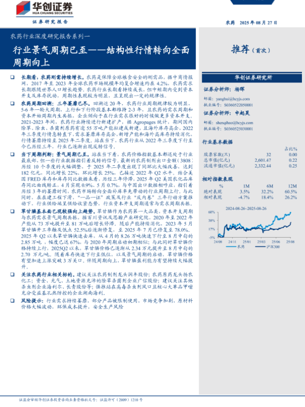 【农药】【202508】农药行业深度研究报告系列一-行业景气周期已至-结构性行情转向全面周期向上-20页