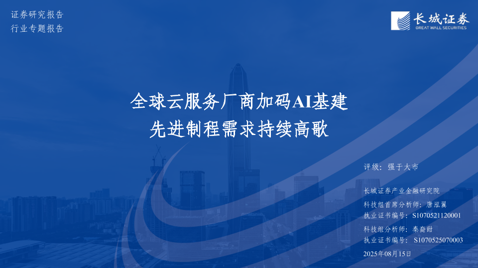 【长城证券】【20250815】全球云服务厂商加码AI基建-先进制程需求持续高歌-46页