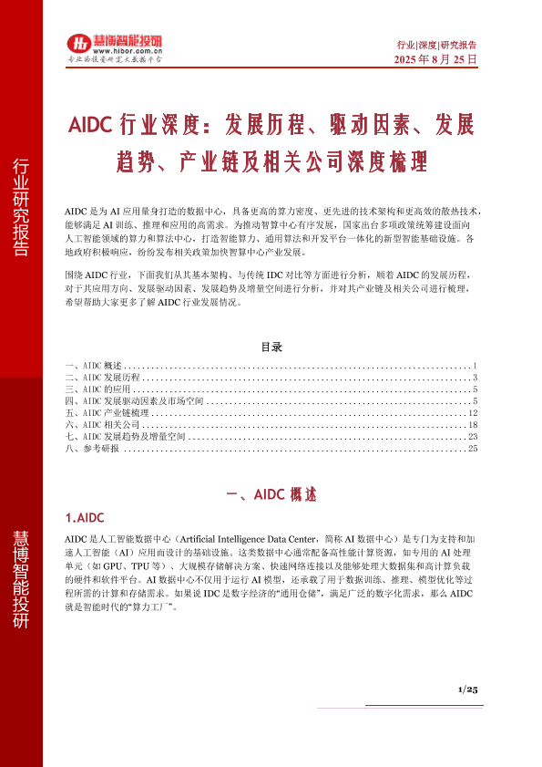【慧博智能投研】【20250825】AIDC行业深度:发展历程、驱动因素、发展趋势、产业链及相关公司深度梳理-25页
