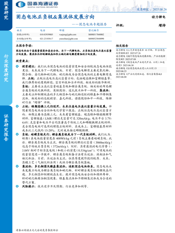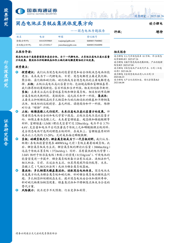 【国泰海通证券】【20250826】固态电池正负极&集流体发展方向-24页