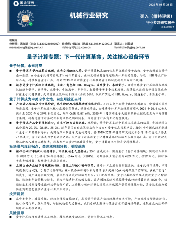【国金证券】【2024】量子计算专题-下一代计算革命-关注核心设备环节-22页