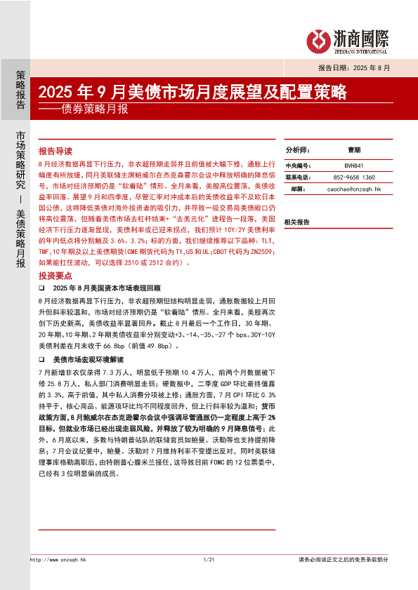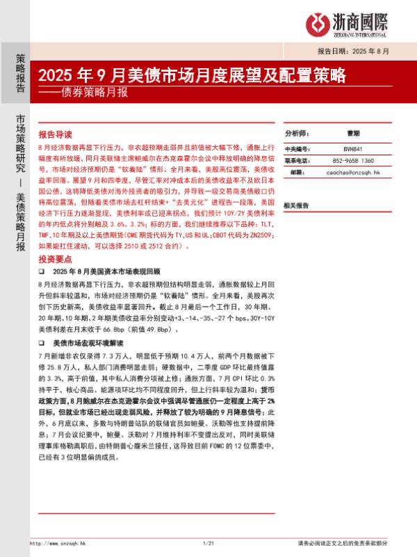 【浙商国际】【202508】2025年9月美债市场月度展望及配置策略-21页