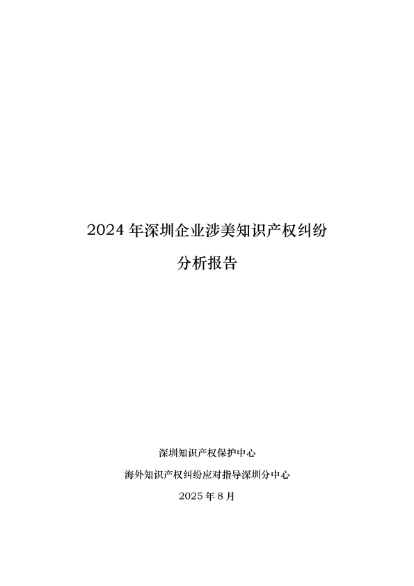 【深圳知识产权保护中心海外知识产权纠纷应对指导深圳分中心】【202508】2024年深圳企业涉美知识产权纠纷分析报告-60页