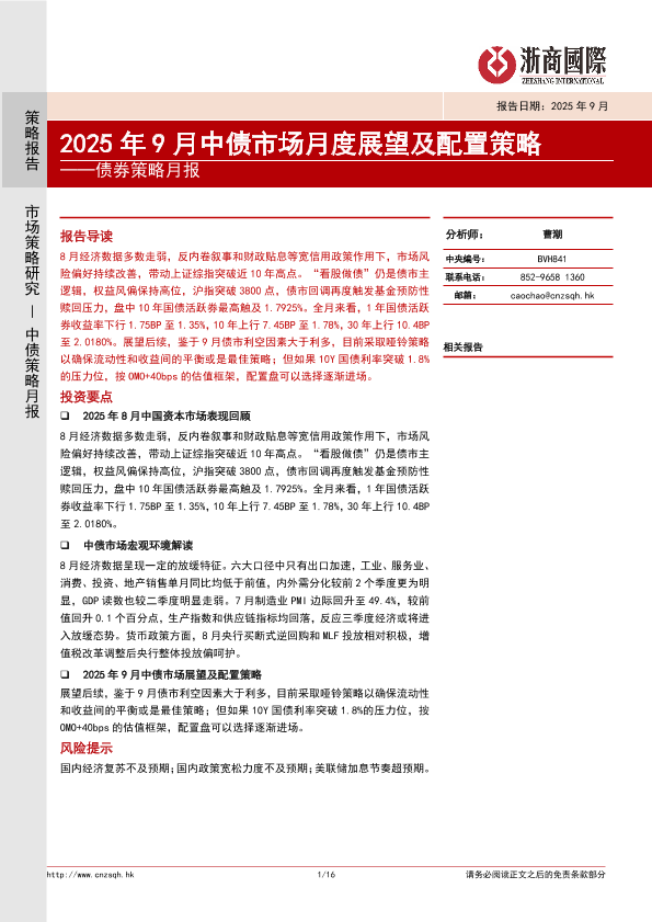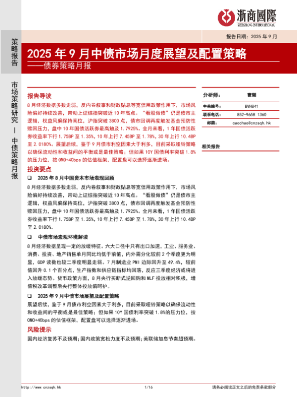 【浙商国际】【202509】2025年9月中债市场月度展望及配置策略-16页