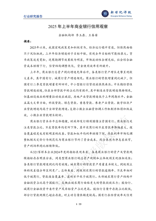 【金融机构部 李玉鼎&王春苗】【202506】2025年上半年商业银行信用观察-33页
