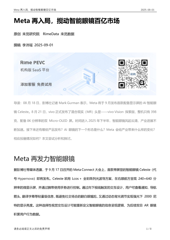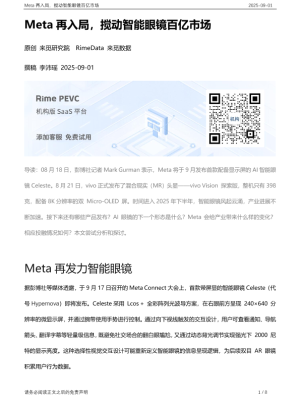 【来觅研究院 RimeData 来觅数据】【20250901】Meta再入局,搅动智能眼镜百亿市场-8页