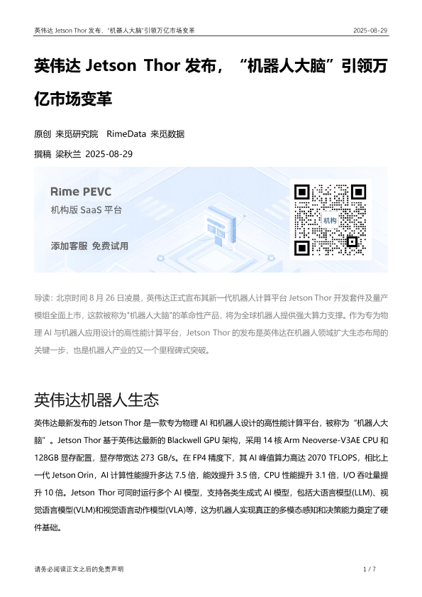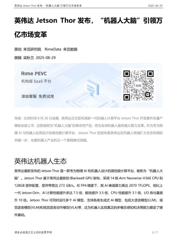 【来觅研究院 RimeData 来觅数据】【20250829】英伟达 Jetson Thor发布,“机器人大脑”引领万亿市场变革-7页