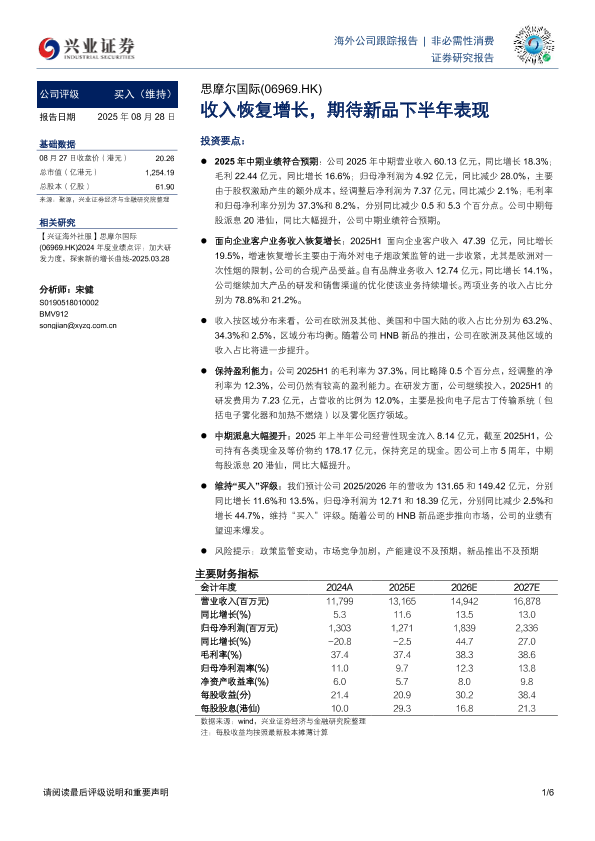 【兴业证券】【20250828】思摩尔国际-收入恢复增长-期待新品下半年表现-6页