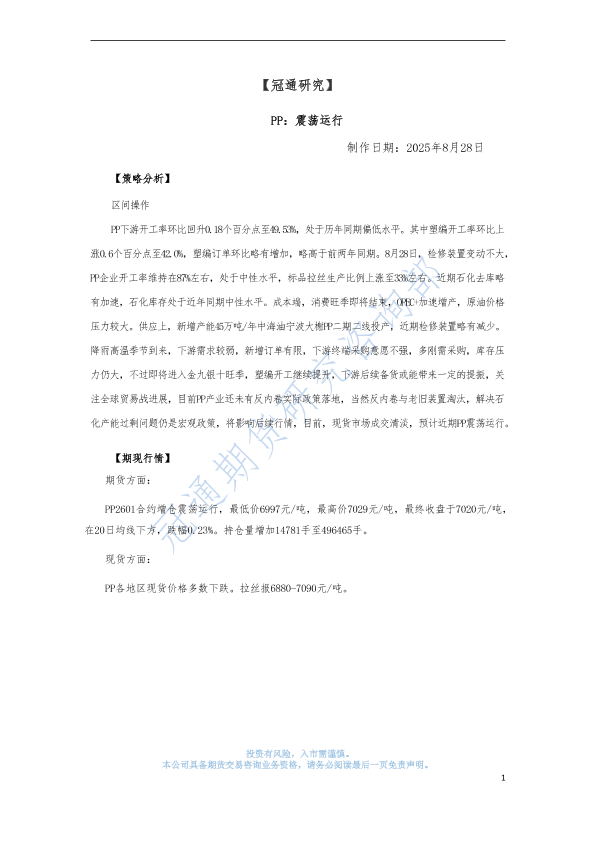 【冠通期货】【20250828】PP:震荡运行-3页