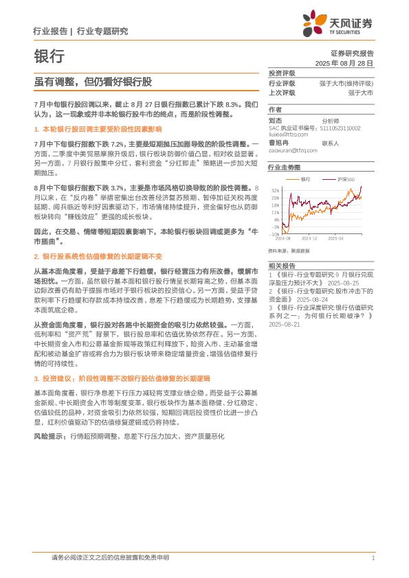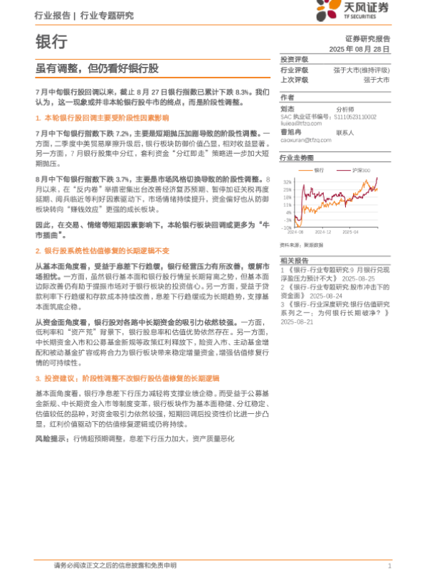 【天风证券】【20250828】银行行业专题研究-虽有调整-但仍看好银行股-5页