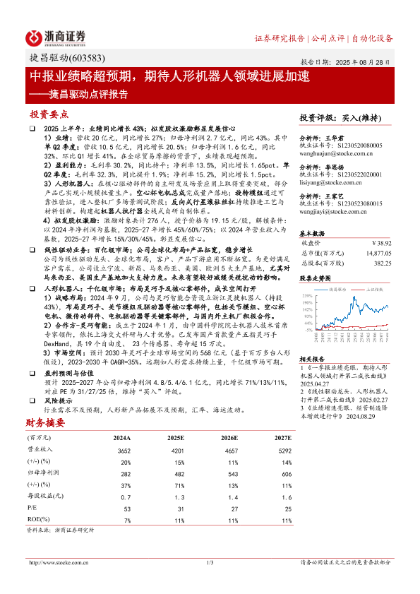 【浙商证券】【20250828】捷昌驱动-中报业绩略超预期,期待人形机器人领域进展加速-3页