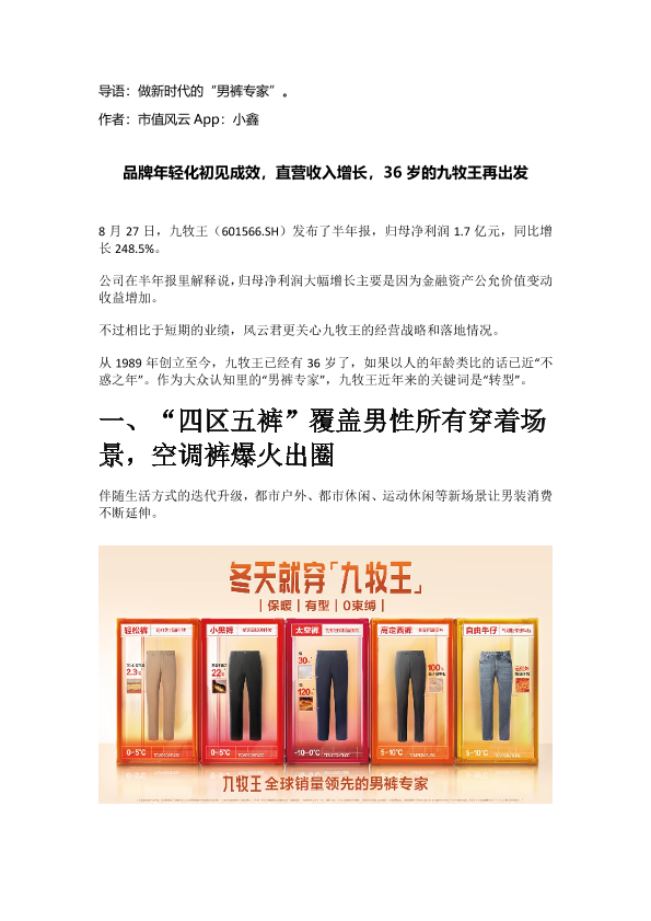 【市值风云 App 小鑫】【20250828】九牧王-品牌年轻化初见成效_直营收入增长_36岁的九牧王再出发-7页