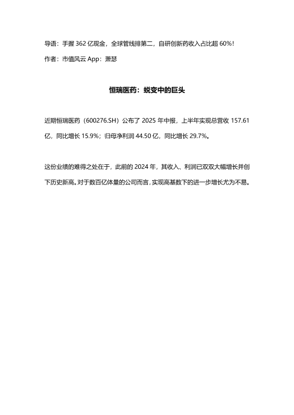【市值风云 App 萧瑟】【20250828】恒瑞医药-蜕变中的巨头-10页