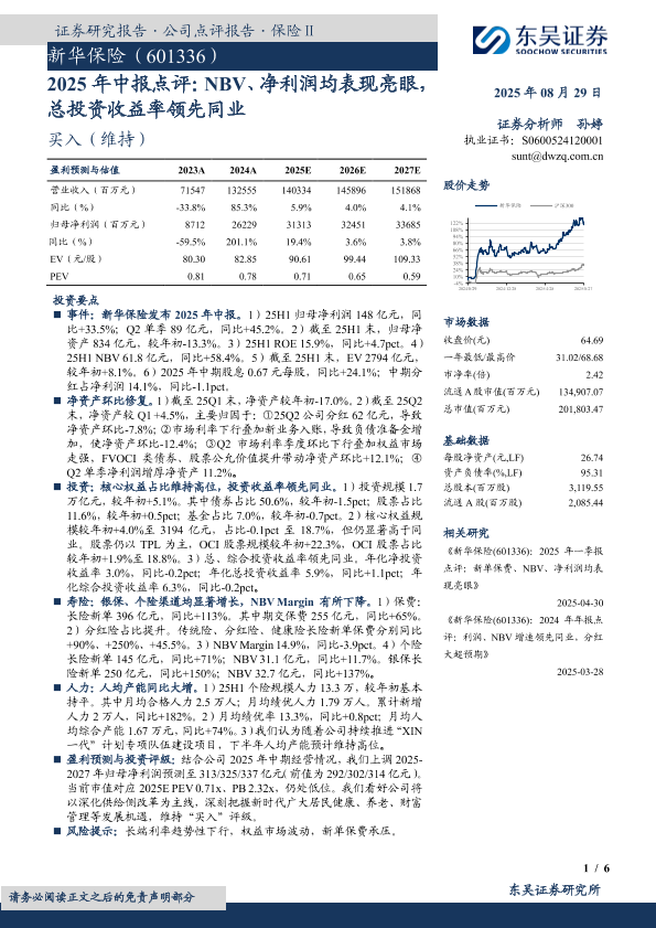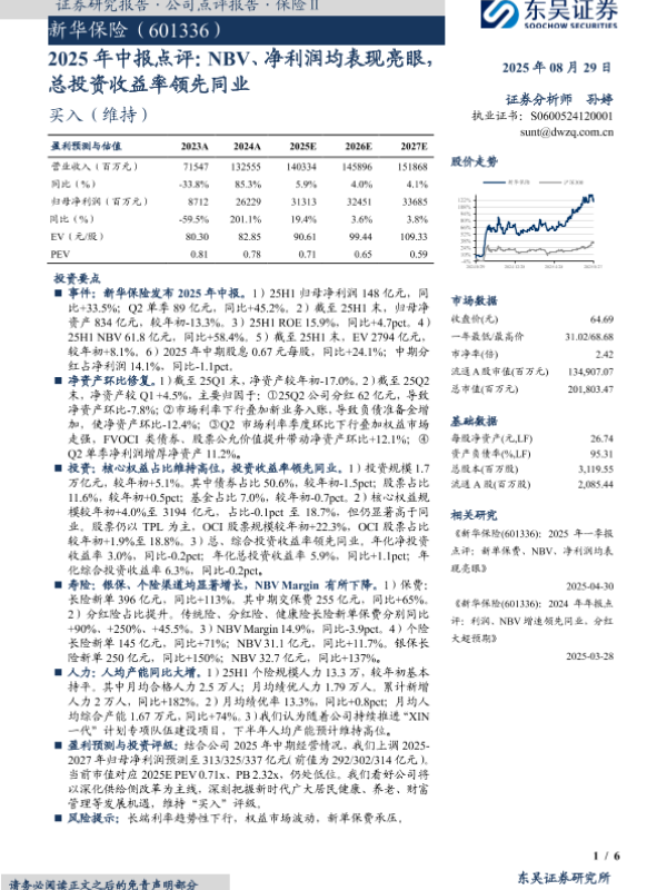 【东吴证券】【20250829】新华保险-2025年中报点评:NBV、净利润均表现亮眼,总投资收益率领先同业-6页