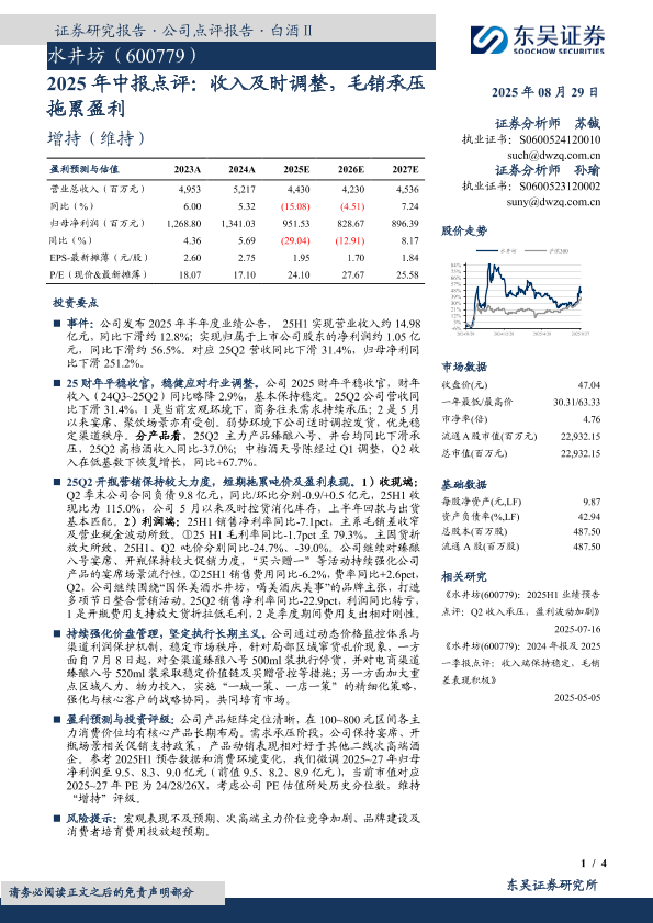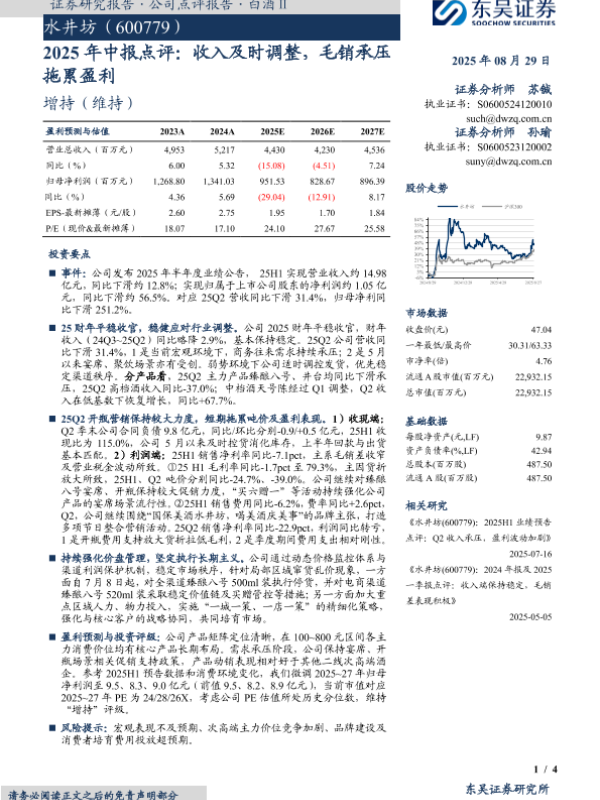 【东吴证券】【20250829】水井坊-2025年中报点评:收入及时调整,毛销承压拖累盈利-4页