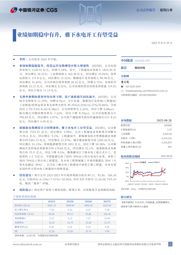 【银河证券】【20250829】中国能建-业绩如期稳中有升_雅下水电开工有望受益-3页