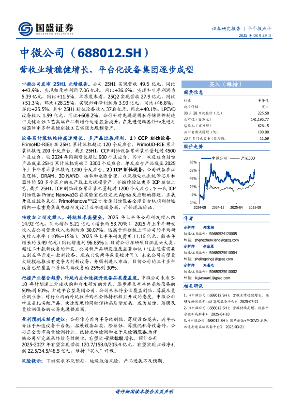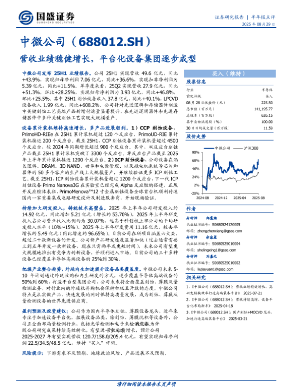 【国盛证券】【20250829】中微公司-688012.SH-营收业绩稳健增长-平台化设备集团逐步成型-4页