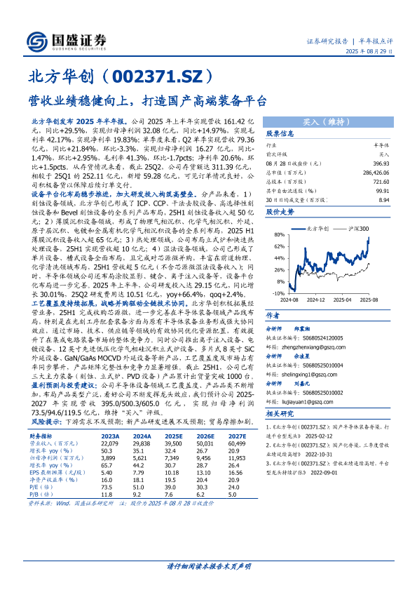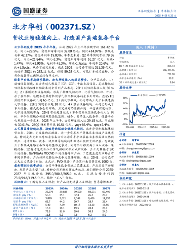 【北方华创】【20250829】北方华创-营收业绩稳健向上-打造国产高端装备平台-3页