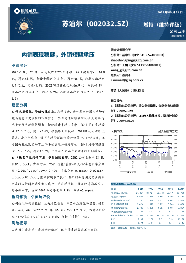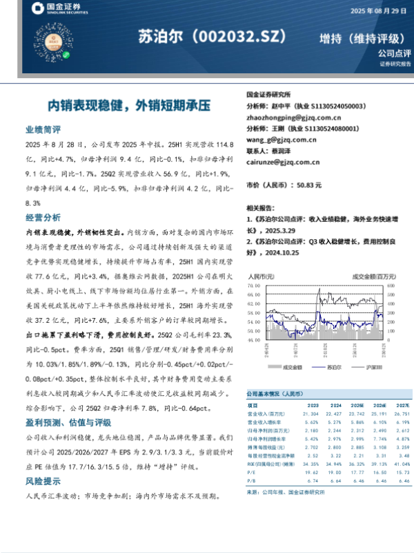 【国金证券】【20250829】苏泊尔-内销表现稳健-外销短期承压-4页