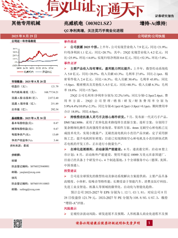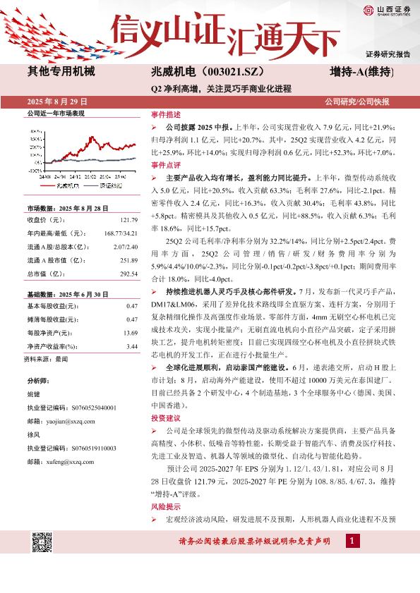 【山西证券】【20250829】兆威机电(003021.SZ)-Q2净利高增_关注灵巧手商业化进程-5页