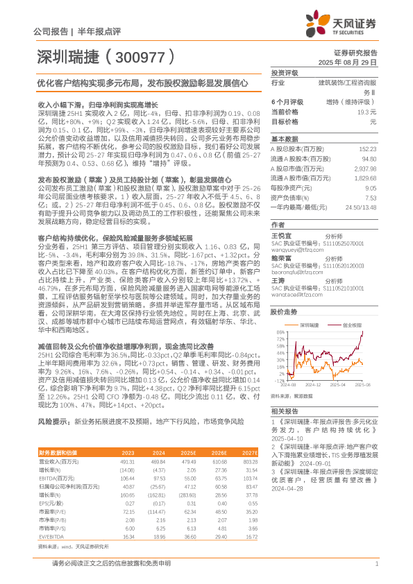 【天风证券】【20250829】深圳瑞捷-优化客户结构实现多元布局-发布股权激励彰显发展信心-3页