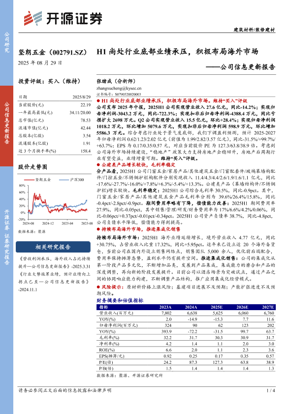 【开源证券】【20250829】坚朗五金-公司信息更新报告-H1尚处行业底部业绩承压 积极布局海外市场-4页