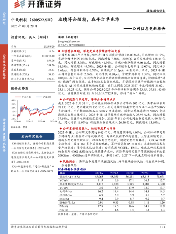 【开源证券】【20250829】中天科技-业绩符合预期,在手订单充沛-4页