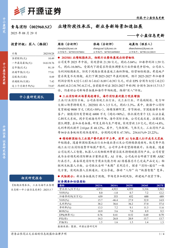 【开源证券】【20250829】青鸟消防-业绩阶段性承压,新业务新场景加速拓展-4页