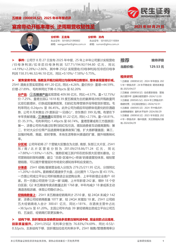 【五粮液】【20250829】五粮液-2025年半年报点评-宴席带动开瓶率增长-逆周期营收韧性足-4页