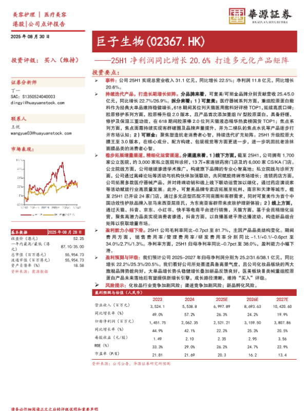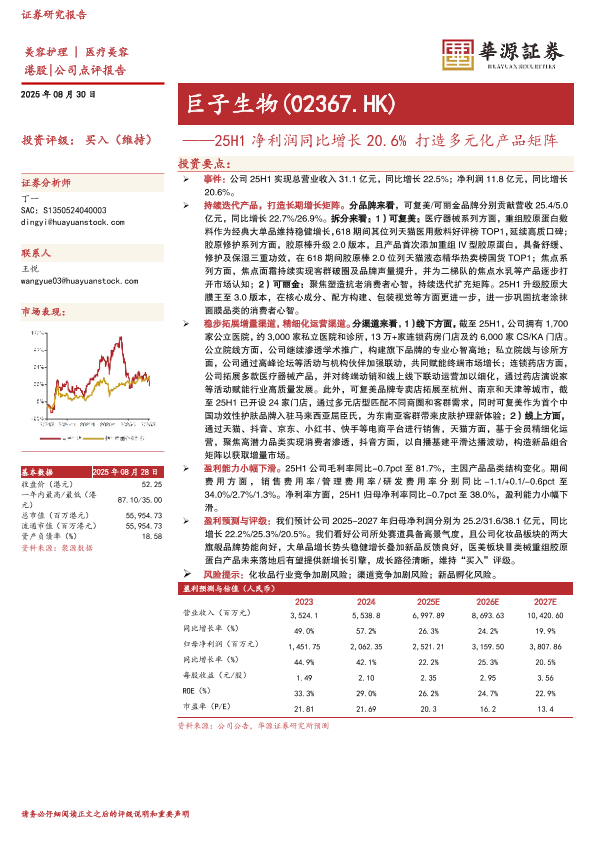 【华源证券】【20250830】巨子生物-25H1净利润同比增长20.6%打造多元化产品矩阵-3页