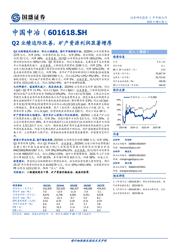 【国盛证券】【20250830】中国中冶(601618.SH)-Q2业绩边际改善,矿产资源利润显著增厚-3页