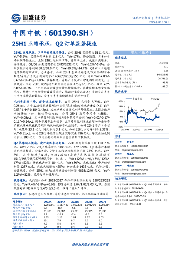【Wind 国证研究分析师 张进】【20250830】中国中铁-25H1业绩承压-Q2订单显著提速-3页