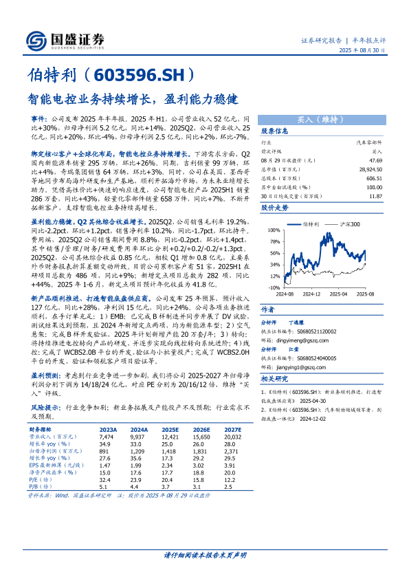 【丁鸿彦】【20250830】伯特利-智能电控业务持续增长-盈利能力稳健-3页